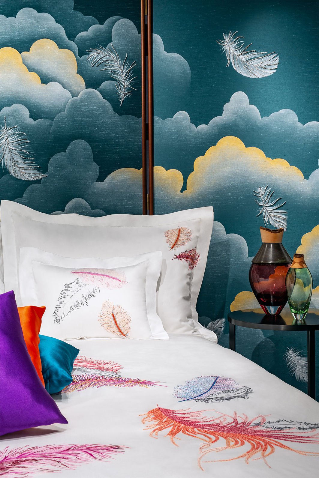 Yves Delorme Couture for Folies ile olan bu işbirliğinde tasarım tüylerin hafifliğinden ve sizi bulut dokuza taşıyan lüks yatak takımlarının rahatlığından ilham alıyor.